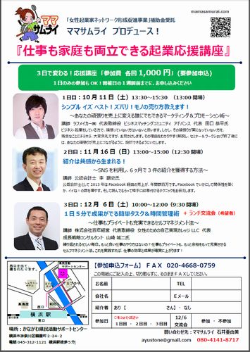 ■『仕事も家庭も両立できる起業応援講座』-3日で変わる!応援講座-