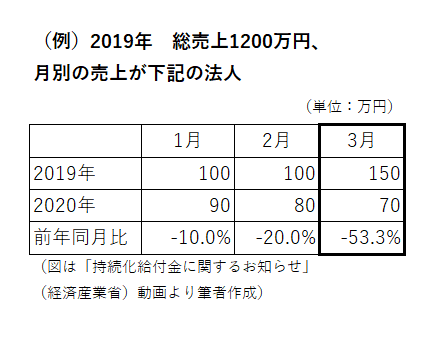 緊急事態措置またはまん延防止等重点措置に伴う外出自粛等の影響により売上が50%以上減少した中小法人等に対する支援金「月次支援金」。